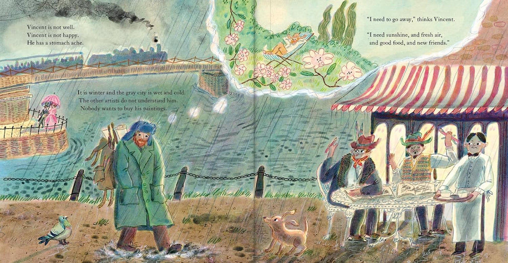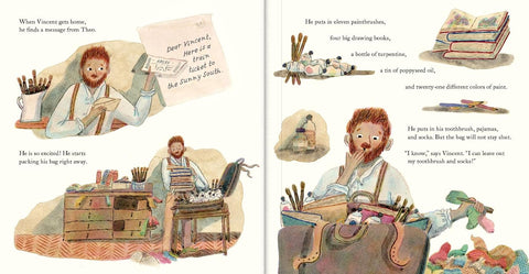 Vincent is fed up with life in the gray city, but things are about to change! With the support of his loving brother Theo, Vincent sets off on a journey to the sunny south. There he will discover new and inspiring places and make new friends. But will he be able to paint the picture of his dreams? A heart-warming snapshot of a happy and creative period in Van Gogh's life, this story focuses on the bond between two brothers, and how Theo's support and encouragement helped Vincent to reach his full artistic potential.