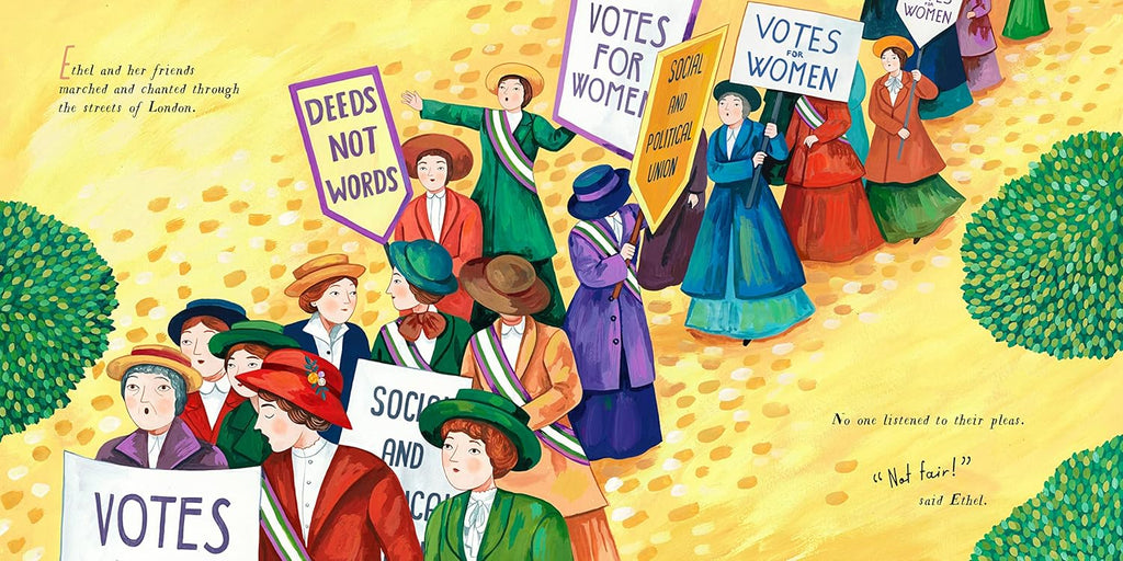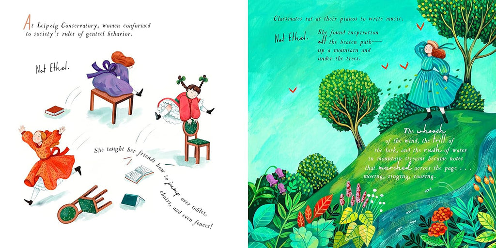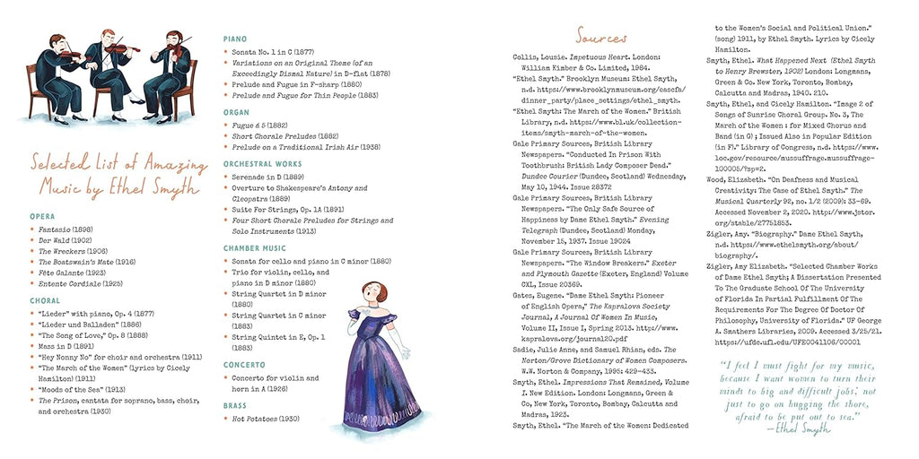 In 1867 England, a girl learned to be proper and speak when spoken to. But one girl marched to a different beat. Ethel Smyth climbed fences, explored graveyards, and yearned to become a famous composer at a time when only men could publish their music. But become a composer she did, first signing her music as E. Smyth so people couldn't guess her gender, then eventually writing openly as a woman (but still sometimes not getting paid!). Ethel had had enough. She joined the suffragette movement, marching in the streets and fighting for the right to vote. She even composed the famous "March of the Women" battle cry--and directed it from her cell window with a toothbrush when she was put into prison.