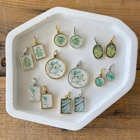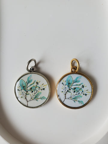 This Olive Branch pendant charm is made by hand, encasing & sealing an original image in layers of resin.