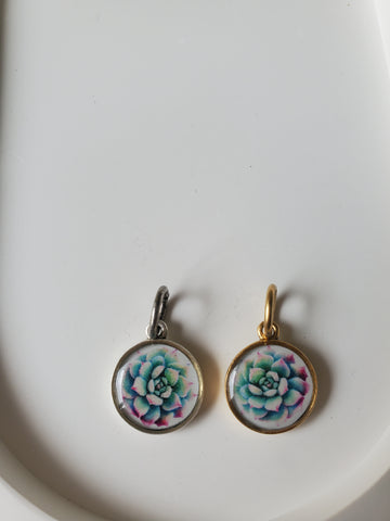 This Succulent pendant charm is made by hand, encasing & sealing an original image in layers of resin.