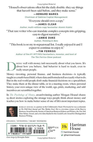 "Morgan Housel is that rare writer who can translate complex concepts into gripping, easy-to-digest narrative. The Psychology of Money is a fast-paced, engaging read that will leave you with both the knowledge to understand why we make bad financial decisions and the tools to make better ones." -- Annie Duke, Author, Thinking in Bets