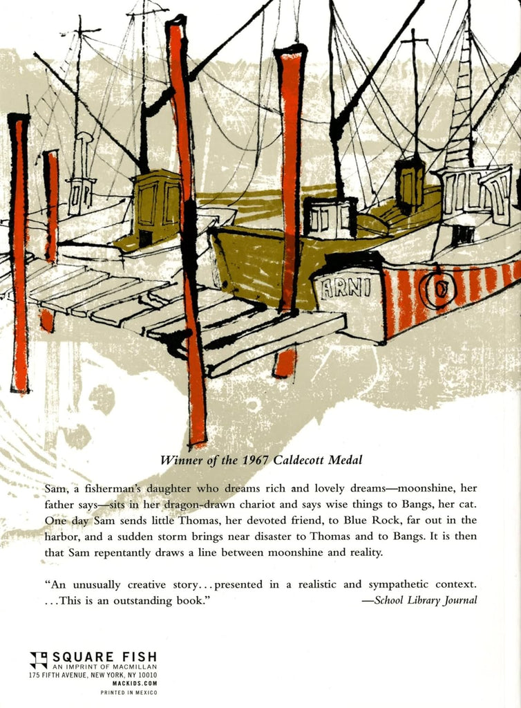 Samantha (known as Sam) is a fisherman's daughter who dreams rich and lovely dreams--moonshine, her father says. But when her tall stories bring disaster to her friend Thomas and her cat Bangs, Sam learns to distinguish between moonshine and reality.