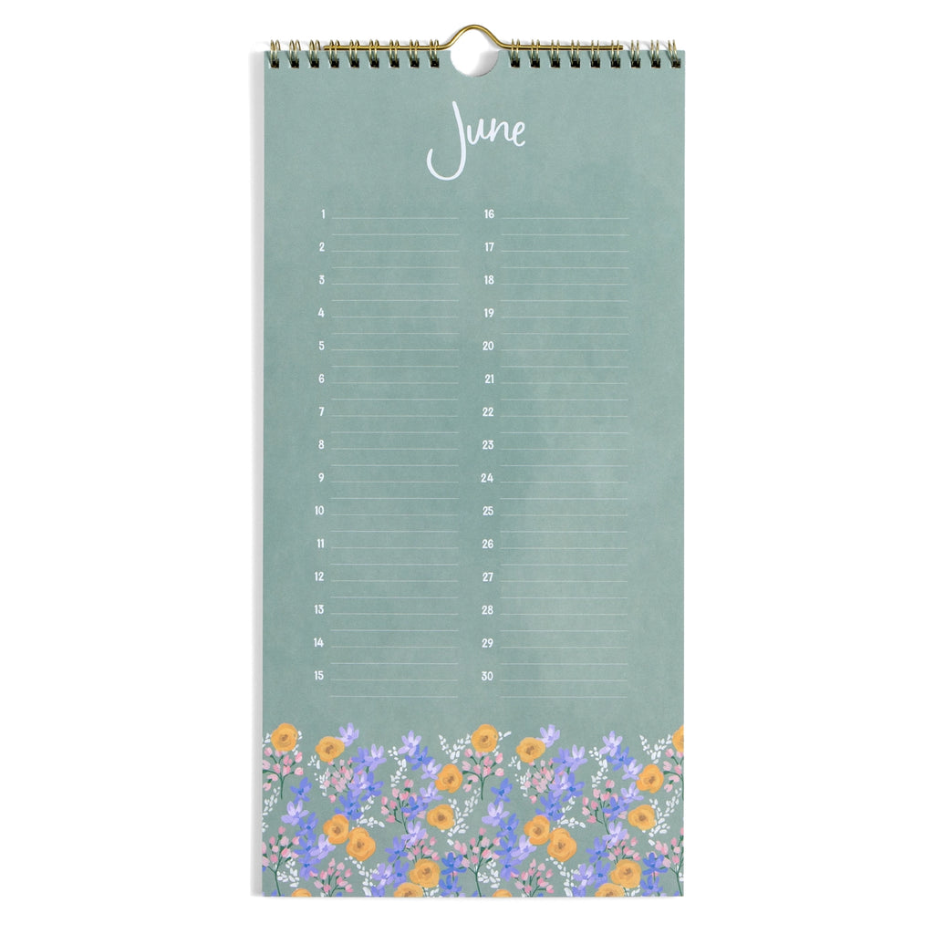 Never miss a special occasion again with the Celebrations by the Month Undated Spiral Wall Calendar. Designed to track birthdays, anniversaries, and other important dates year after year, this perpetual calendar blends function with beauty. Each month features hand-painted florals in a soft, seasonal color palette, bringing a touch of nature to your home or office. With its undated format, you can use it indefinitely—just fill in once and reference it for years to come. A thoughtful and practical gift for planners, organizers, and anyone who loves to celebrate life’s milestones.