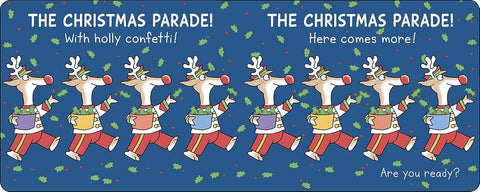 Written with the irresistible rhythm of a lively marching band and illustrated with Boynton's signature characters, including chickens with bassoons, mice with piccolos, a tiny bird with a large tuba, and a Santa rhino with a sack full of presents, Christmas Parade is a superb present for young children and families everywhere.