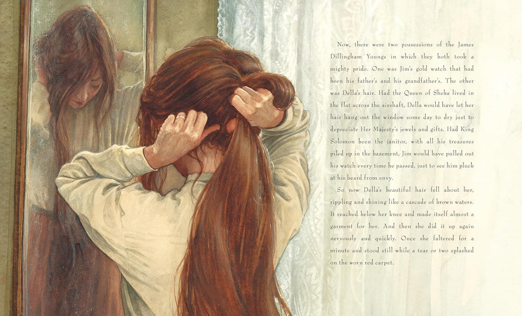 In a shabby New York flat, Della sobs as she counts the few coins she has saved to buy a Christmas present for her husband, Jim. A gift worthy of her devotion will require a great sacrifice: selling her long, beautiful hair. Jim, meanwhile, has made a sacrifice for Della that is no less difficult. As they exchange gifts on Christmas Eve, the discovery of what each has done fills them with despair, until they realize that the true gifts of Christmas can be found more readily in their humble apartment than in any fine store. O. Henry paints a masterly portrait of unfaltering love, a haven from the harsh world outside. The poignancy of his story is captured in P.J. Lynch's eloquent art, wherein every glance, every gesture, tells a subtle truth.