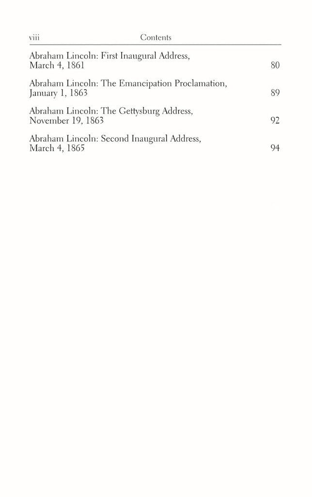 - Abraham Lincoln's First Inaugural Address, Emancipation Proclamation, and Gettysburg Address.
