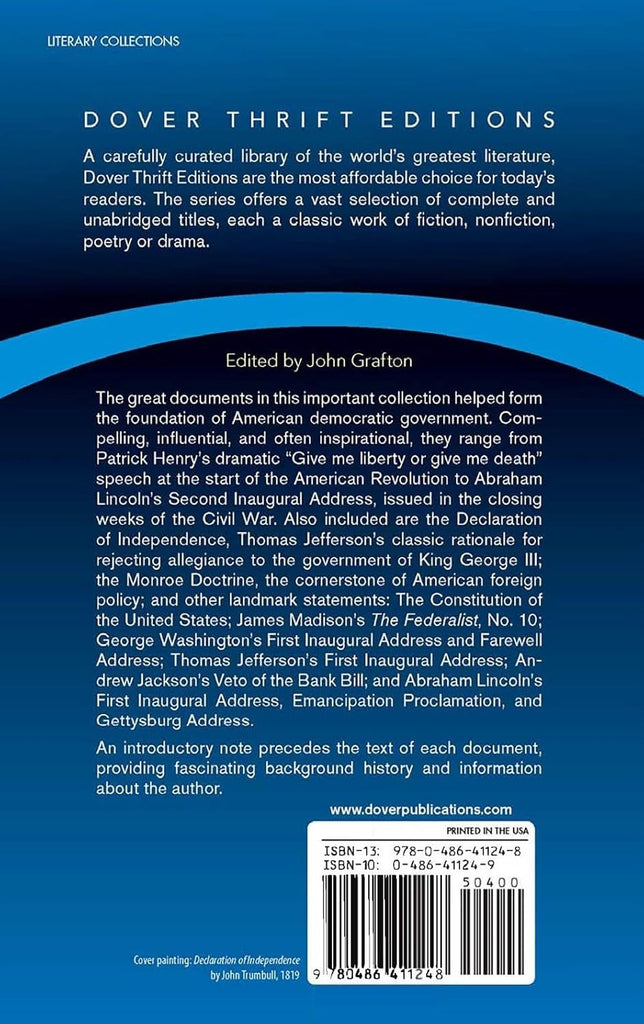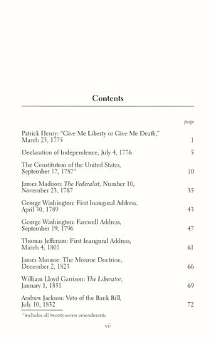 The great documents in this important collection helped form the foundation of American democratic government. Compelling, influential, and often inspirational, they range from Patrick Henry's dramatic "Give me liberty or give me death" speech at the start of the American Revolution to Abraham Lincoln's Second Inaugural Address, issued in the closing weeks of the Civil War.