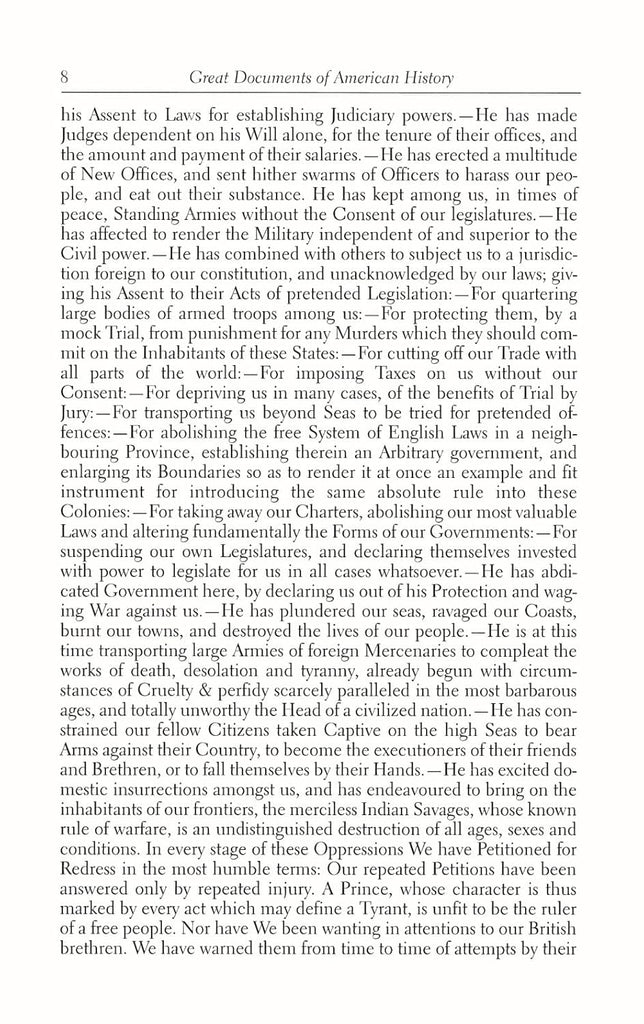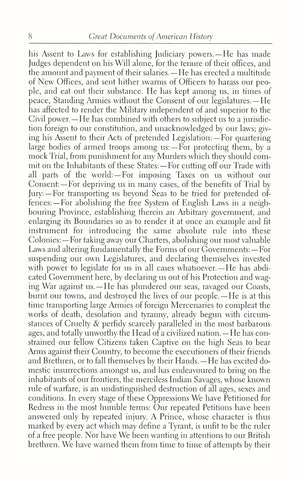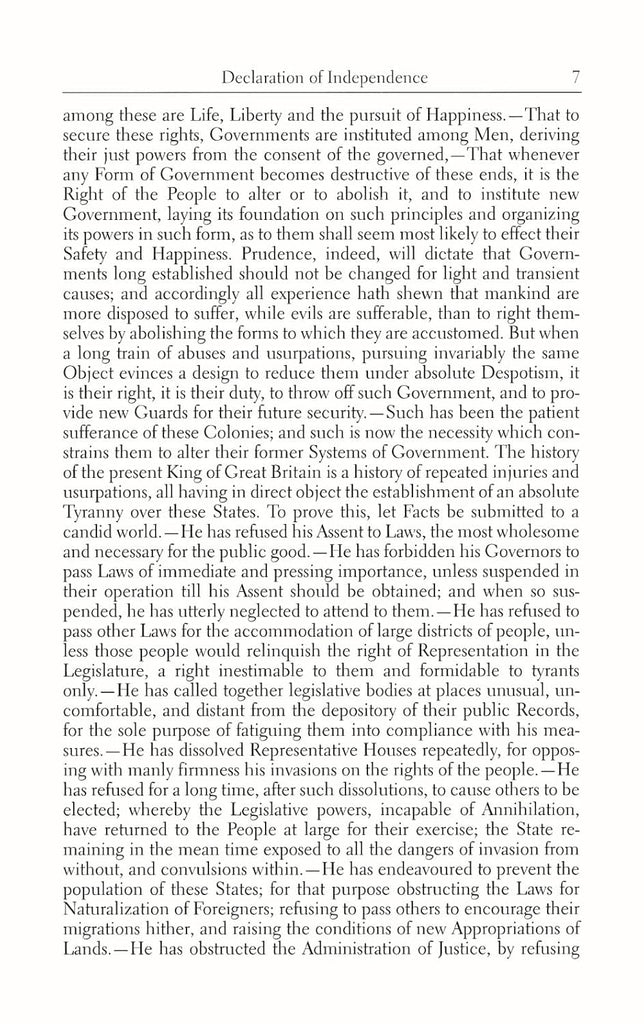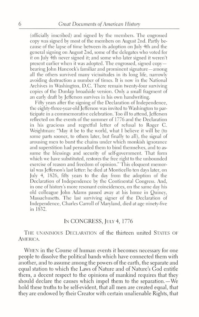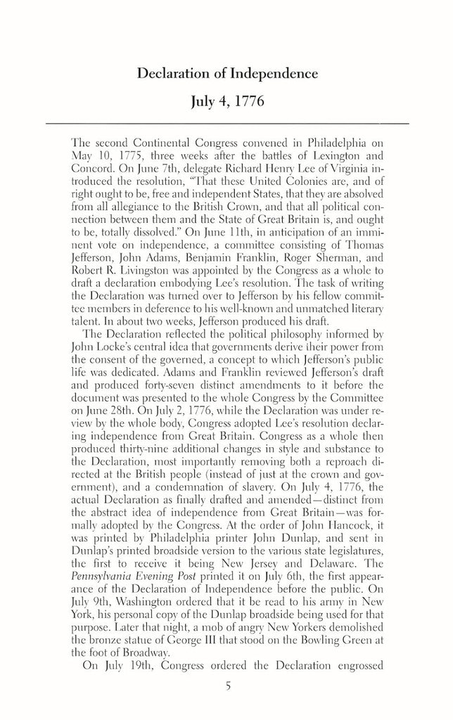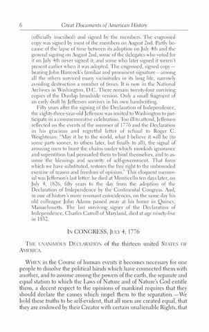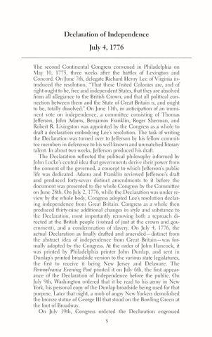 - The Declaration of Independence, Thomas Jefferson's classic rationale for rejecting allegiance to the government of King George III.