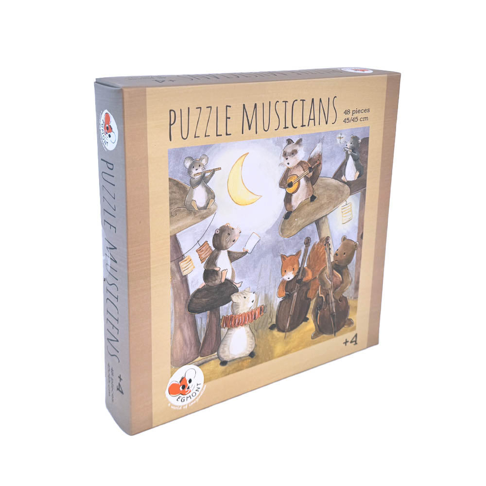 Bring music to life with the Musicians Puzzle! This 48-piece puzzle features big and sturdy pieces, making it perfect for little hands. Delight in the colorful and playful illustrations of animal musicians as you piece together this fun and engaging puzzle. Perfect for fostering creativity and problem-solving skills.