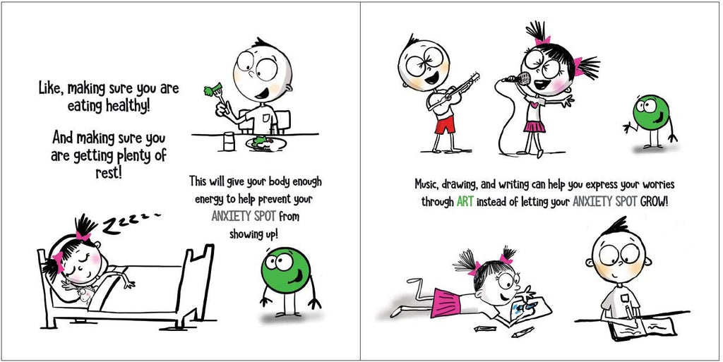 Anxiety comes from feelings of being worried, scared, or anxious. And although these feelings are quite common and sometimes they can help protect us, they can also get TOO BIG and overwhelming! When these feelings become anxiety and it can prevent a child from doing what he/she wants and and/or needs to do, which can make anxiety a disability. This story addresses how anxiety can affect all ages and can show up in all different situations. The Anxiety SPOT (Gray SPOT) creates a visual representation so that a child can see when it's gets too big, and how to shrink it back to a PEACEFUL SPOT.