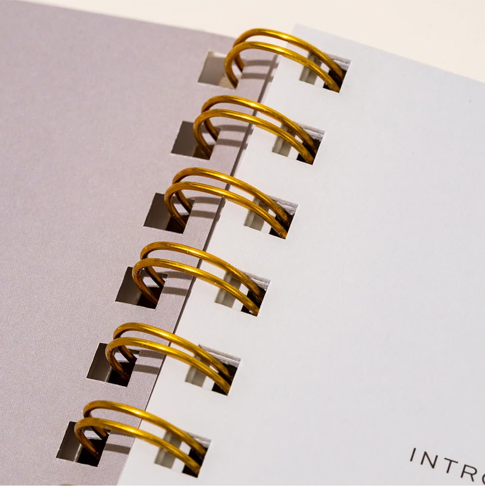 - Pages for attaching photographs, keepsakes, cards, and mementos in a convenient covered-spiral format