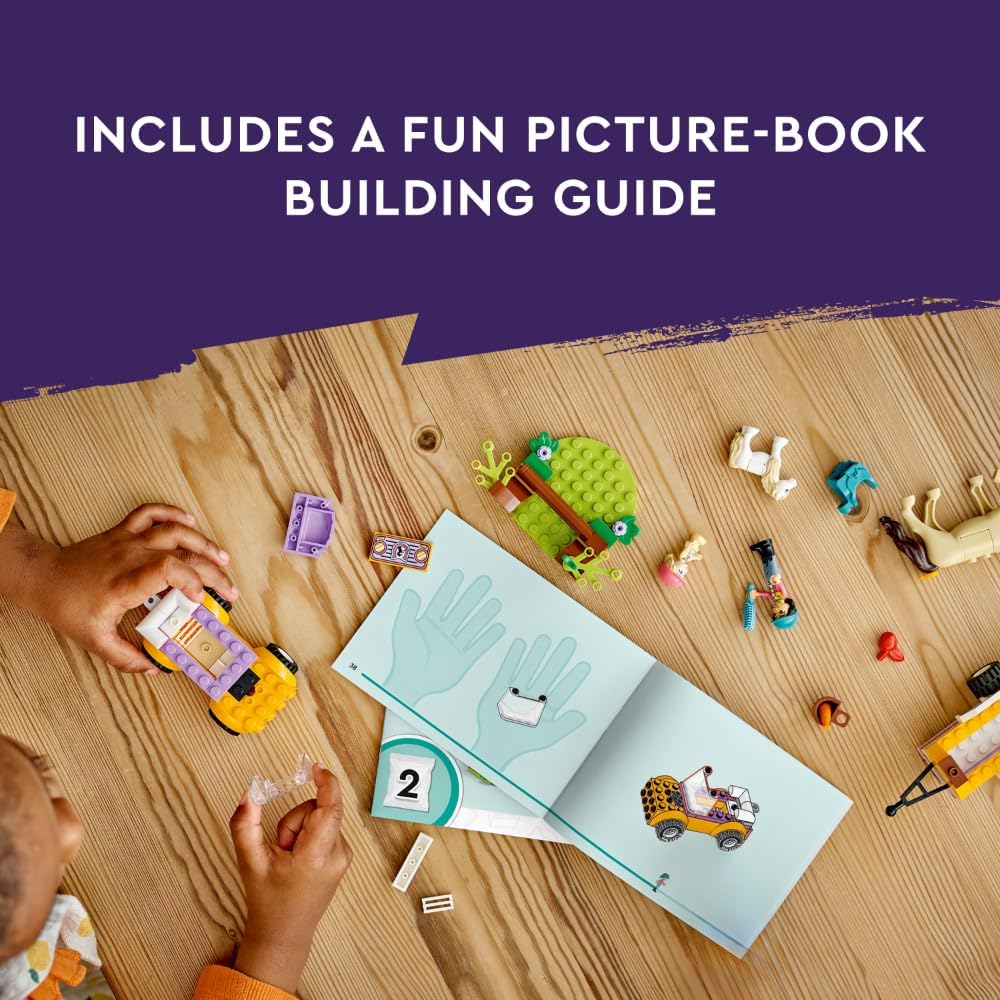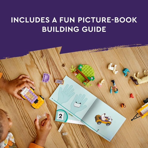 Liann and Zoya are going on a riding trip. First, they load the horse and pony onto the trailer, then drive to the forest. When they arrive, they give the horses a brush and get them ready for a ride. They find a fallen tree, which makes an obstacle for the horse and pony to jump over. After a fun day, the friends reward the horses with a tasty carrot.