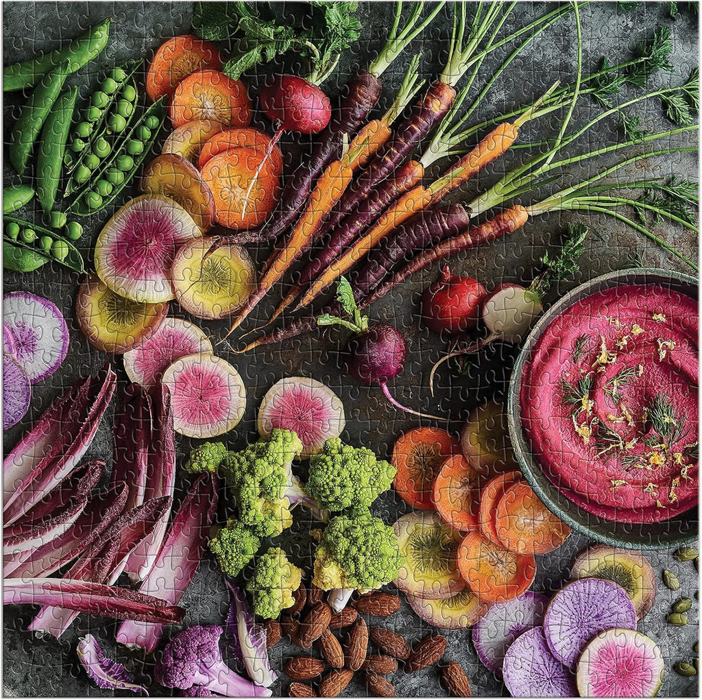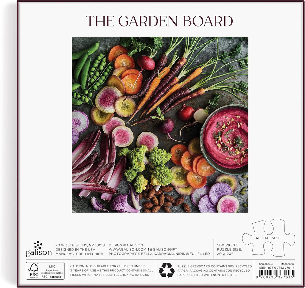 The Garden Board 500 Piece Puzzle from Galison features a beautiful array of vegetables freshly picked from a local garden for a fun and delicious puzzle experience. Galison puzzles are packaged in matte-finish sturdy boxes, perfect for gifting, reuse, and storage.