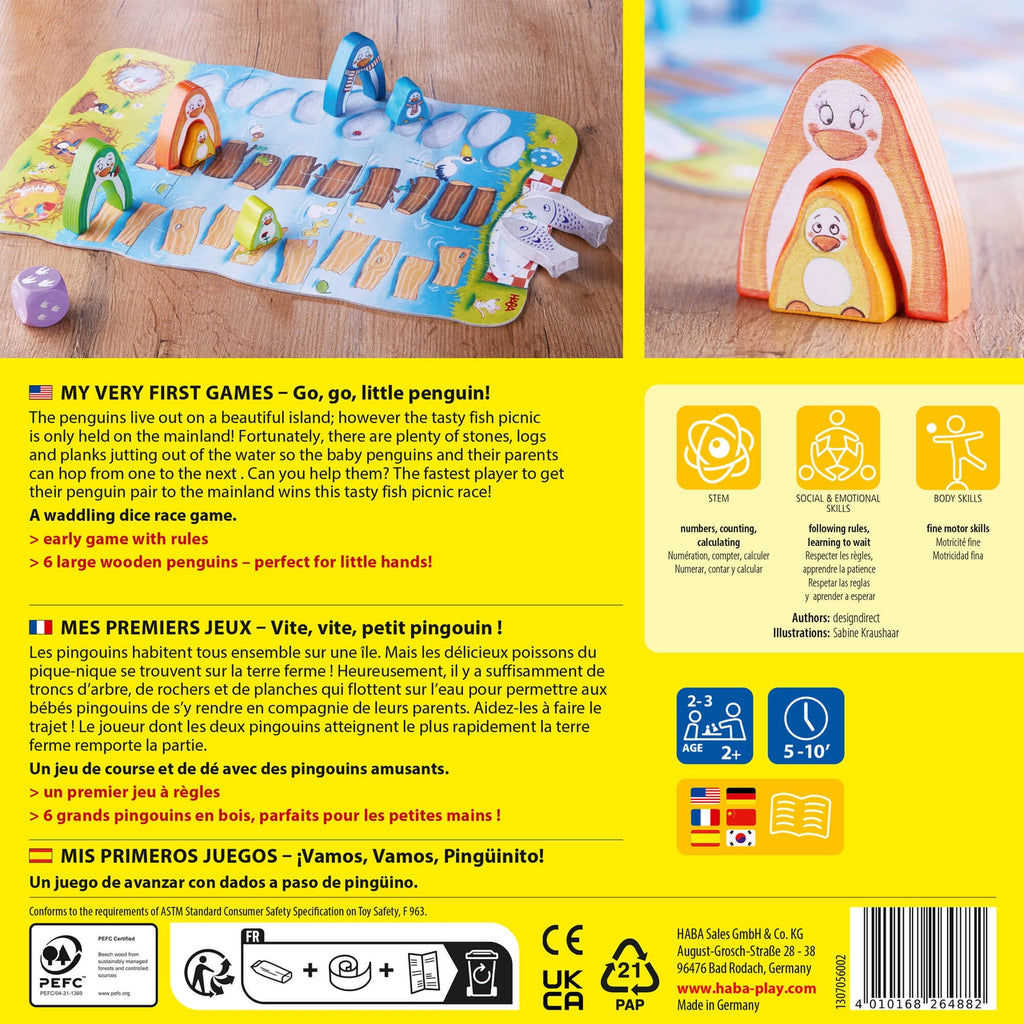 Get ready for a penguin party! Entice your customers with Go, Go, Little Penguin a delightful dice race game where children assist penguins in reaching their fishy picnic on the mainland. This engaging game is part of HABA's My Very First Game series, meticulously crafted by educators for early childhood development.