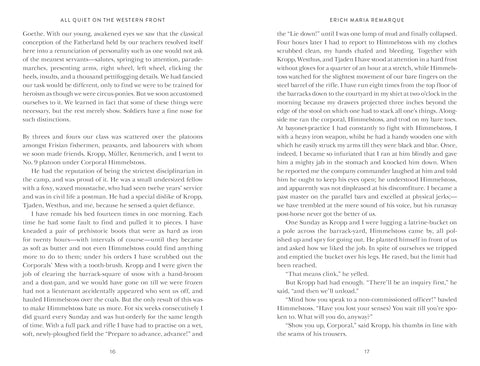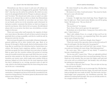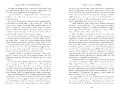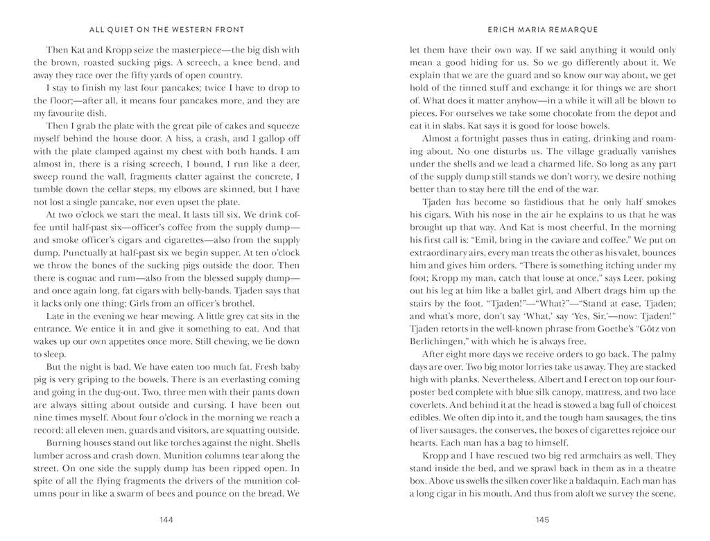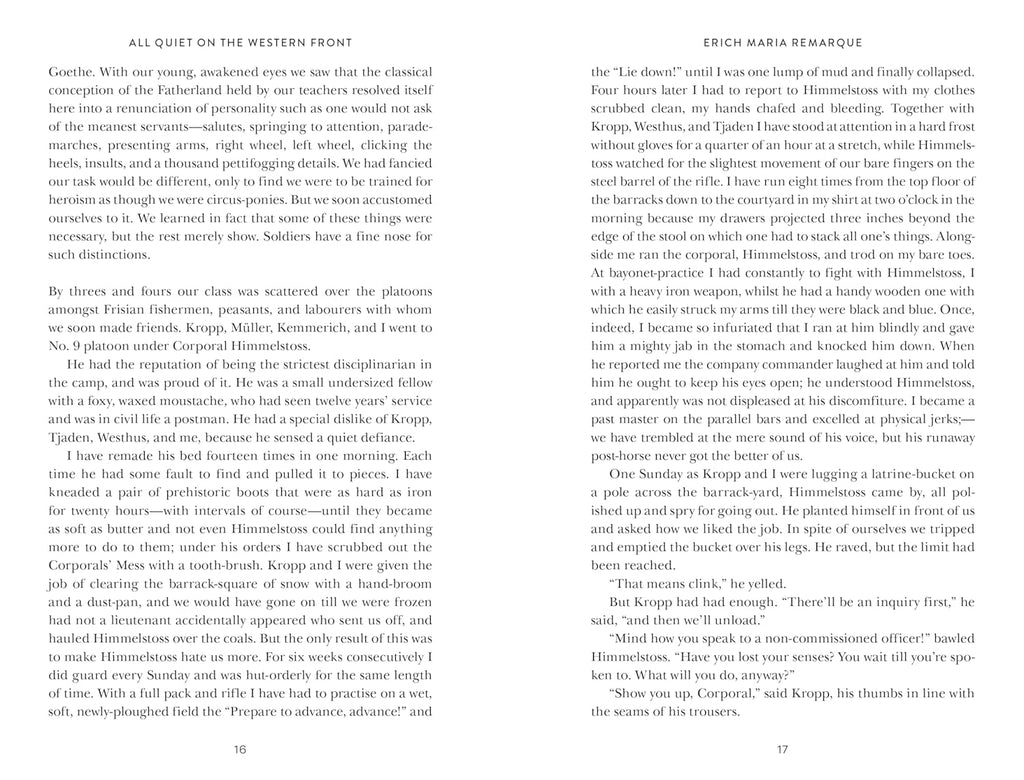 Through years of vivid horror, Paul holds fast to a single vow: to fight against the principle of hate that meaninglessly pits young men of the same generation but different uniforms against one another...if only he can come out of the war alive.