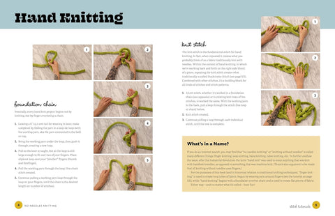 No Needles Knitting by craft influencer Vickie Howell revolutionizes yarn crafting with techniques that require no knitting needles. Using just your hands and chunky yarns, you can create stunning pieces for both fashion and home decor. Whether you're a total beginner or a seasoned knitter looking for new approaches to fiber crafting, this book offers everything you need to explore hands-only knitting.