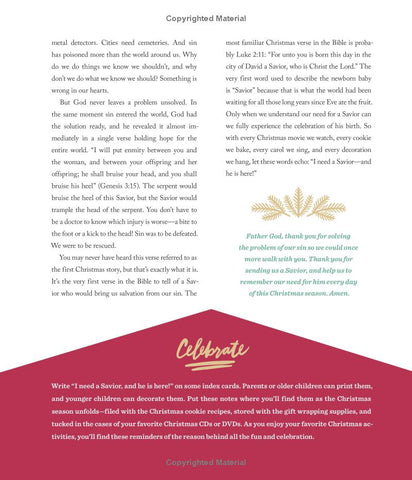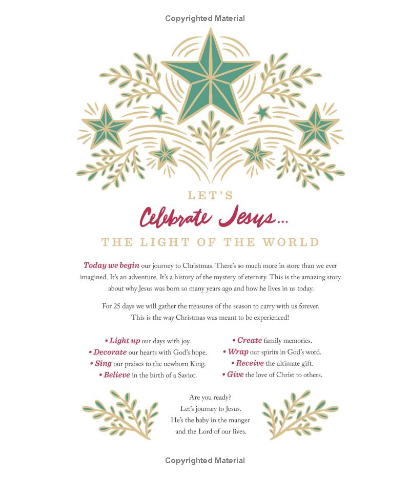 The 25 Days of Christmas is a unique advent devotional written to help your family experience richer joy as you discover what the holiday is really about. Each two-page spread features a short story for you to read aloud, an inspiring Scripture verse, and a fun and easy family activity to remind you of what you learned that day.