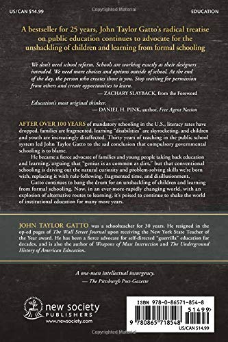 Gatto's radical treatise on public education, a New Society Publishers bestseller for 25 years, continues to bang the drum for an unshackling of children and learning from formal schooling. Now, in an ever-more-rapidly changing world with an explosion of alternative routes to learning, it's poised to continue to shake the world of institutional education for many more years.