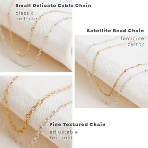 Option to Add a Chain - delicate link chain necklace (brass base chain plated using 24k gold, or .999 fine silver) and finished with a lobster claw clasp. Chain sold separately.