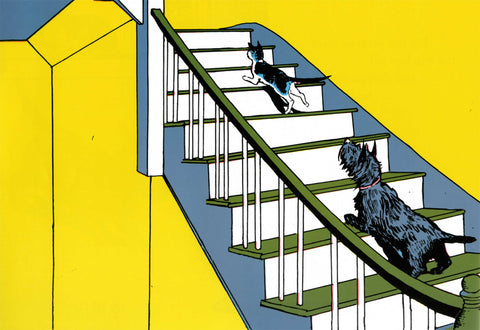 Angus's world is turned upside down when a feline joins the household. She's eating his food, napping in his favorite sun-filled places, and jumping out of reach whenever he chases her. Peace and quiet resumes when the cat disappears, but Angus finds himself missing his new friend.