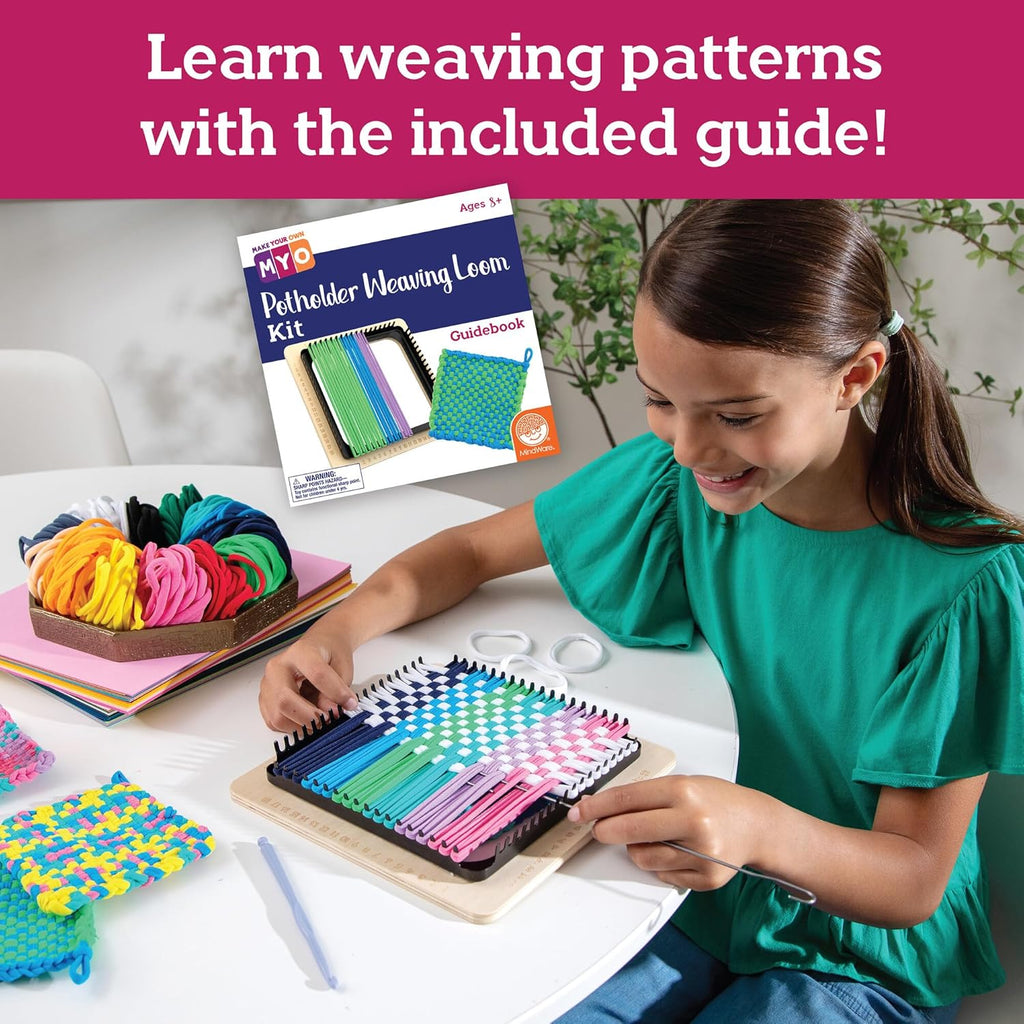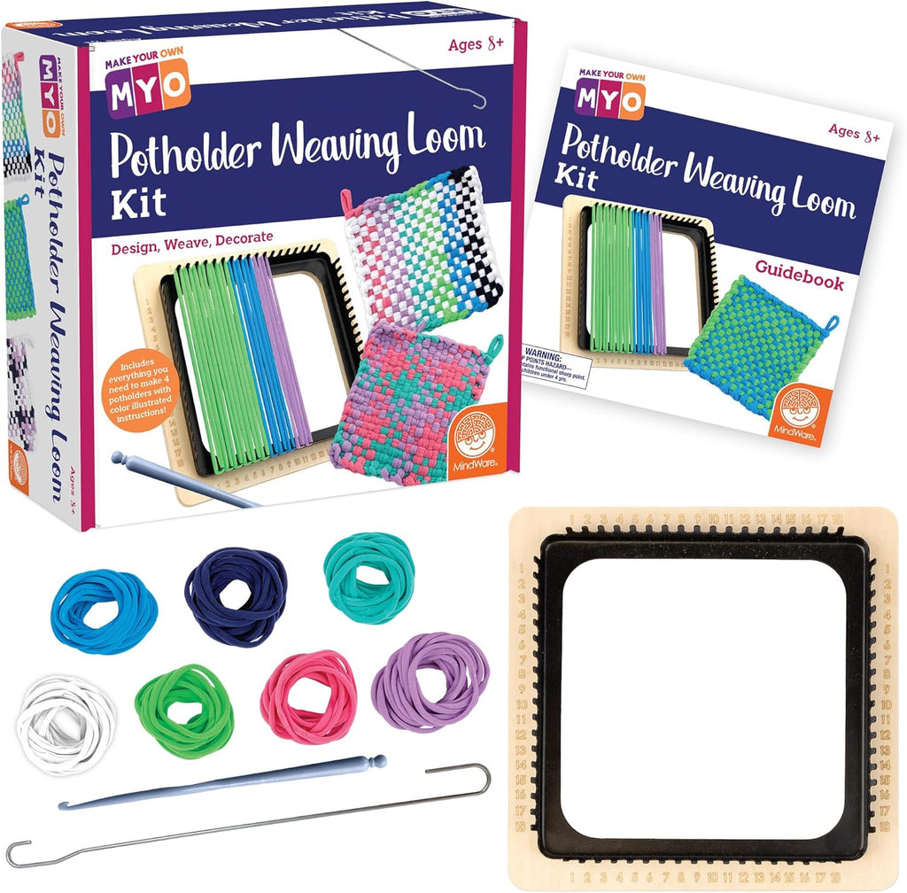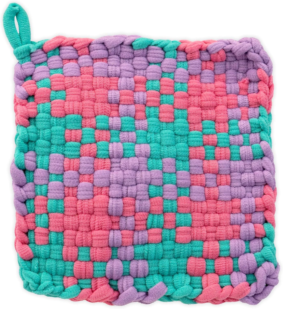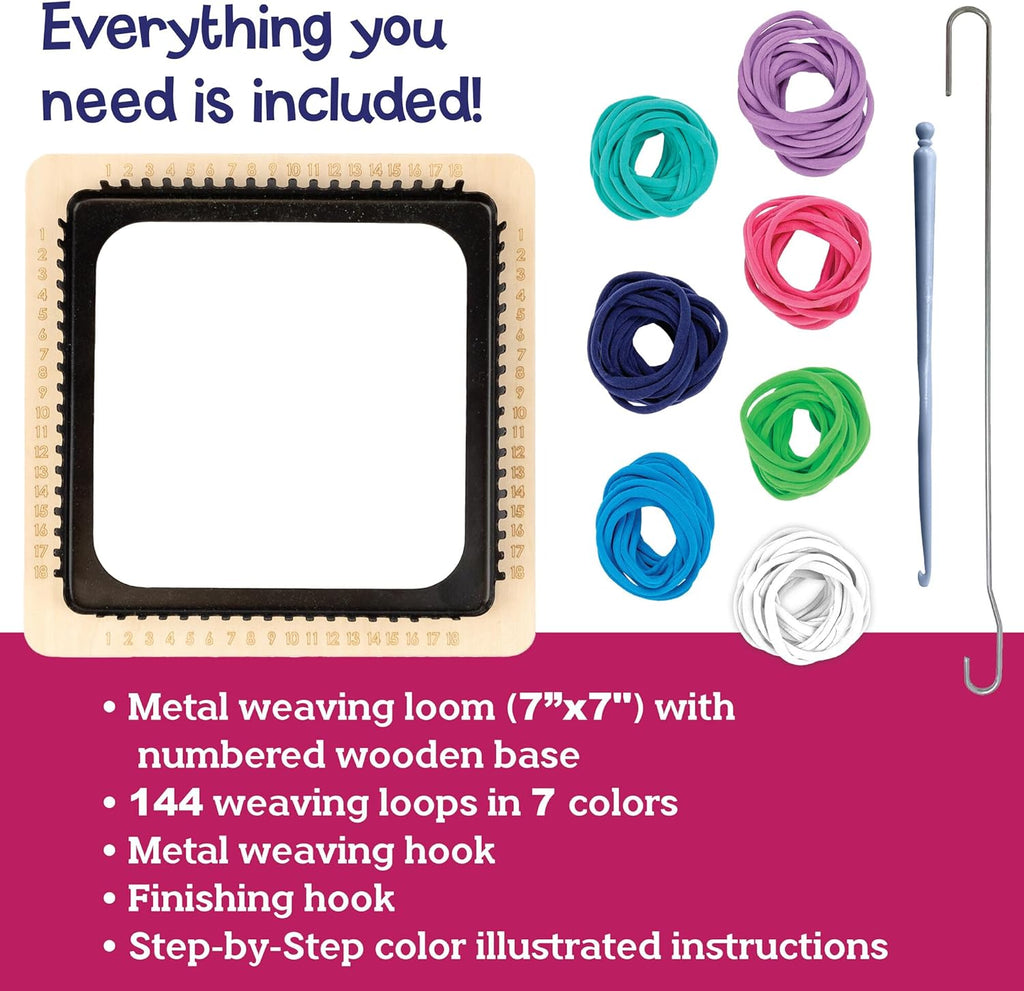Designed with everything both beginners and experienced crafters need to weave uniquely patterned potholders, this kit features a specially numbered, sturdy metal loom; a wooden base for easy use and 144 loops in todays trendy colors. Perfect for gifting, teaching valuable skills or simply enjoying a relaxing crafting session, this DIY kit delivers functional art pieces that brighten any kitchen decor!