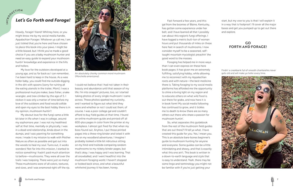 Go Forth and Forage is the essential guide for foraging mushrooms in Appalachia. It covers all the basics of identification, safety, and responsibility while steeped in the down-home country charm that has made Whitney such a resounding success on social media. The book is filled with beautiful photos, great descriptions, delicious recipes, and humorous anecdotes. This book is a must have for prospective foragers and nature enthusiasts.