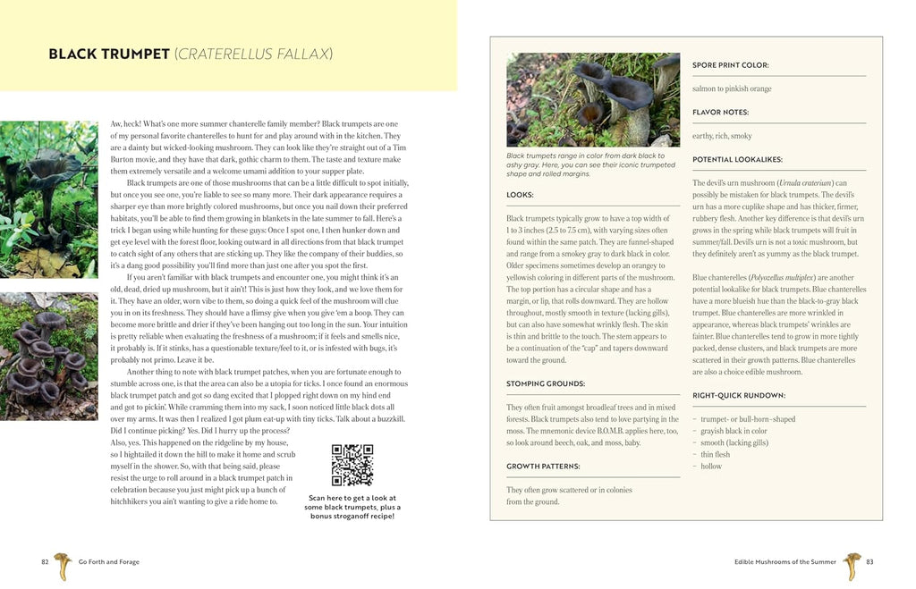 Written in a fun and lively style, Go Forth and Forage empowers you to confidently identify and harvest dozens of wild mushrooms. With beautiful photographs, engaging commentary, and helpful tips, this book is an excellent resource for aspiring mushroom hunters and nature enthusiasts