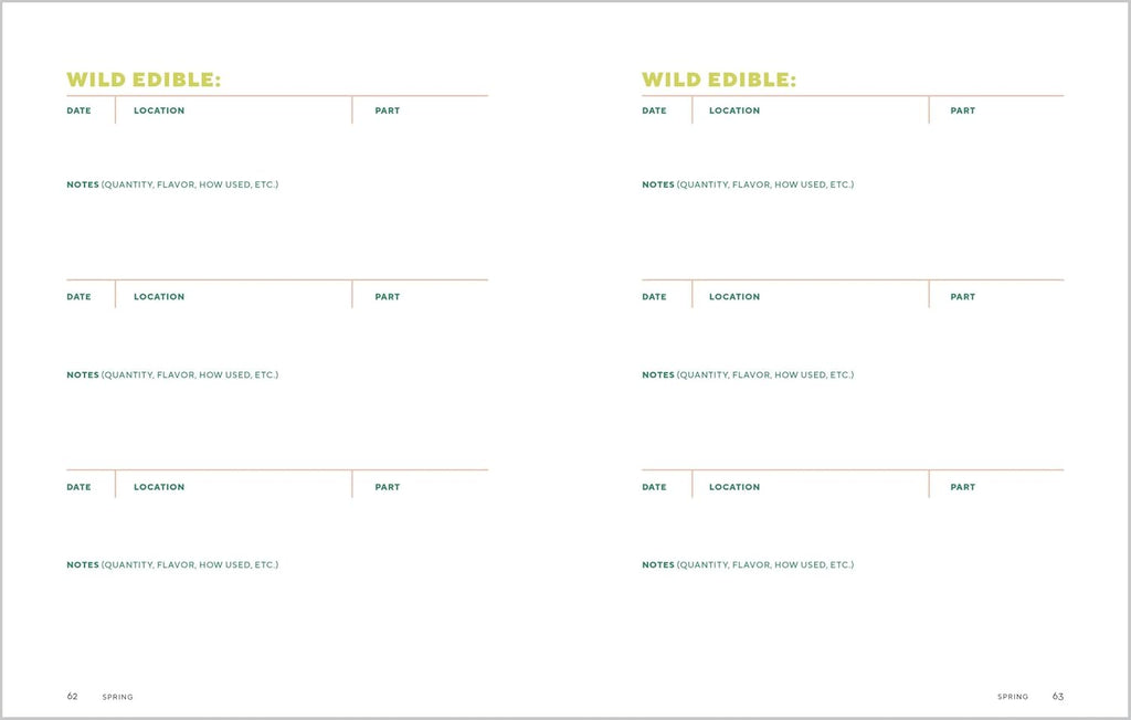This seasonal journal for tracking the locations and dates of foraged foods Includes essential foraging guidelines and an extensive table of edible plants and mushrooms for each season.