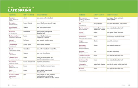 List/chart for spring: Common plants/mushrooms to forage; where to find them and when