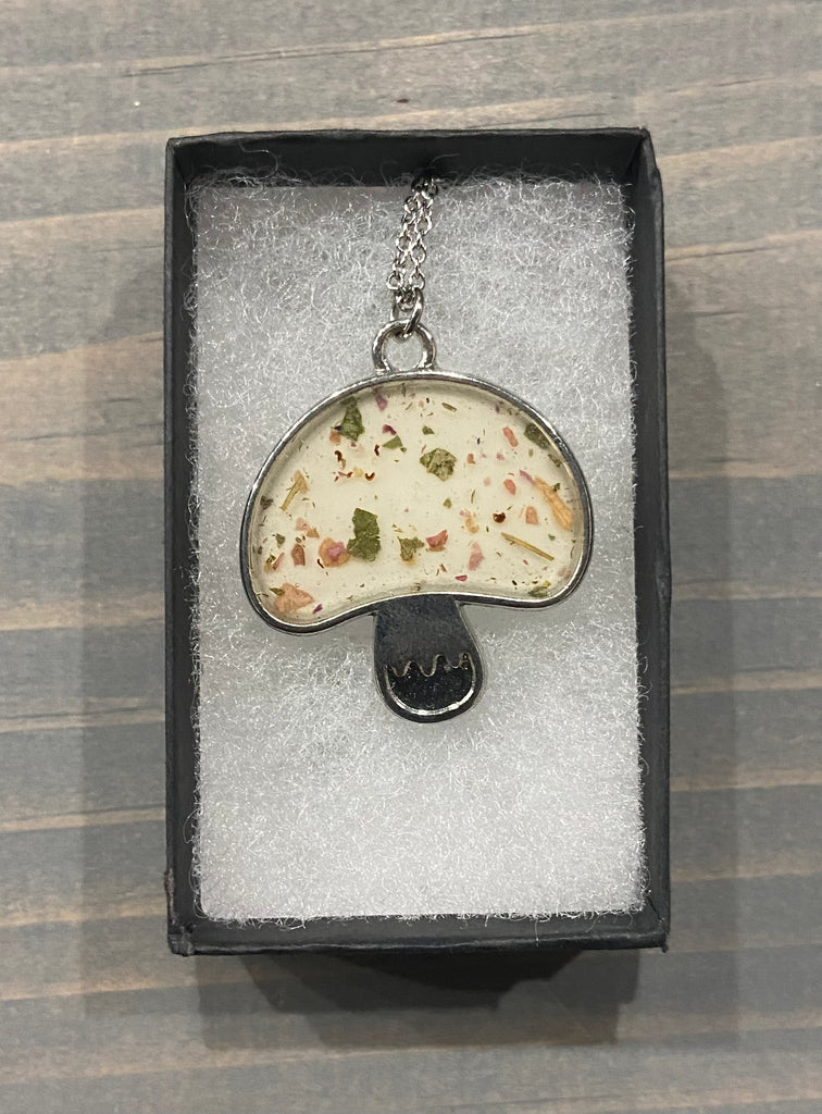 This unique necklace holds a variety of real pressed wildflowers. . It is a perfect accessory for those who love nature and flowers!