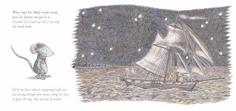 Mabel the mouse wants nothing more than to be a fearless sea captain traveling the world in search of adventure. Every night she watches a man carefully construct a model ship, as his son watches by her side. Mabel and the boy know the model ship is anything but a toy, but they both long to see if it can really float. So Mabel hatches a plan to make her seafaring dreams come true.