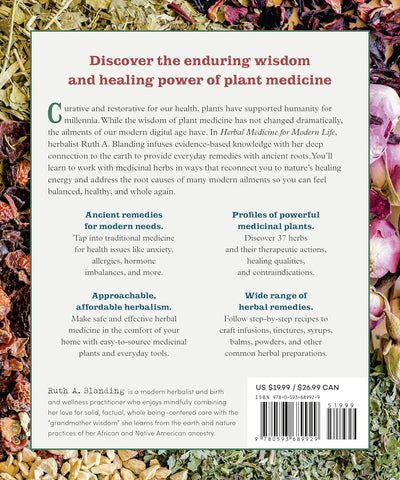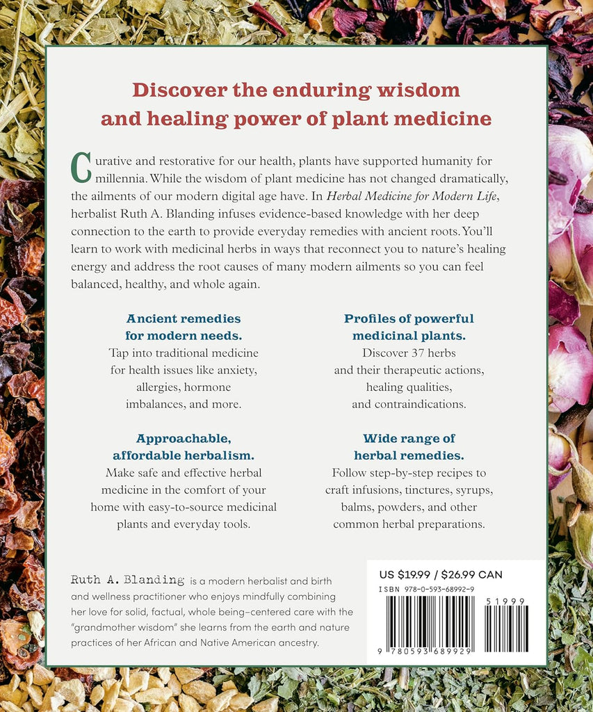 "In Herbal Medicine for Modern Life, Ruth Blanding offers a brilliant reference that is simultaneously accessible and thorough, playful and rigorous, Afro-Indigenous and universal. In the spirit of sankofa--looking back to find the path forward--she invites us into a deeper relationship with plants as a bridge to past and future generations. The recipes inspire confidence in their clarity and are powerfully effective; my personal favorites are the Herbal Decongestant Steam, Sound Sleep Tea, and topical balms to make 'jars of love.' Impeccably relevant, Blanding includes guidance for the ailments of our day, including long COVID, wildfire smoke irritation, and digital eye strain. She honors her commitment to equity and cultural dignity by encouraging readers to support underrepresented and local suppliers, and by shouting out leading Black and Indigenous herbalists in her resource lists. If you have just one herbalism book on your shelf, let it be Herbal Medicine for Modern Life. Ruth, I know your ancestors are proud!" --Leah Penniman, cofounder of Soul Fire Farm and author of Farming While Black and Black Earth Wisdom