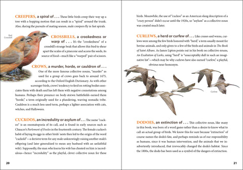 This bright, vivid, and colorful book introduces a multitude of collective nouns for specific types of birds, along with the words' meanings and history.