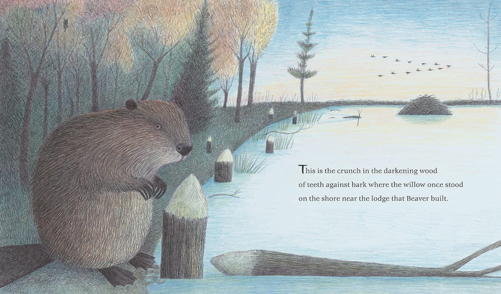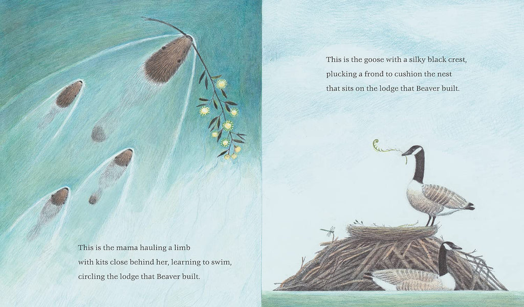 "This beautifully illustrated nonfiction picture book uses evocative poetic language paired with ink and colored pencil drawings on tinted paper. Soft and realistic, it reveals a "poetry in nature" using the same satisfying cadence and repetition as "This Is the House that Jack Built." It's a pleasure to read aloud. . . Even the endnotes are fascinating. . . this book is a window to the natural world that will be valuable for many years to come."