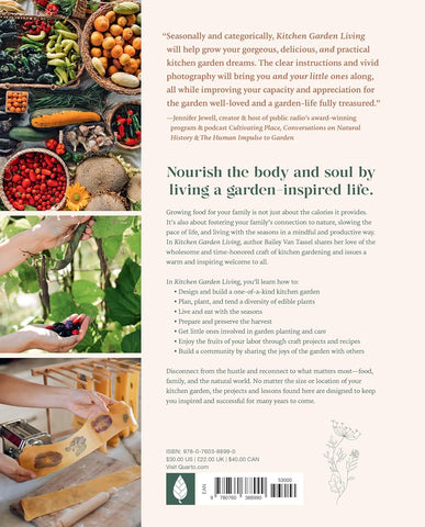 "Bailey Van Tassel's new book Kitchen Garden Living is chock-full of the radiant warmth and enthusiasm you've come to enjoy from her @BaileyVanTassel Instagram feed, her Kitchen Garden Society outreach, and her Garden Culture podcast. Seasonally and categorically, Kitchen Garden Living will help grow your gorgeous, delicious, and practical kitchen garden dreams. The clear instructions and vivid photography will bring you and your little ones along, all while improving your capacity and appreciation for the garden well-loved and a garden-life fully treasured. (As the mother of a 25- and 23-year-old, I would have loved some of Bailey's tips "for the little ones" throughout the book when mine were little!)"