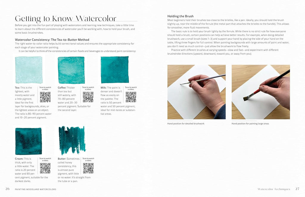 Each tutorial is designed to make learning accessible and enjoyable, with downloadable templates to help you get started, and QR codes linking to video tutorials for extra support. Rita's detailed instructions and love for nature shine through on every page, encouraging you to explore and celebrate the beauty of the forest through art.