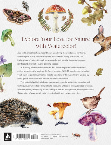 Designed for beginner and intermediate artists, Painting Woodland Watercolors covers all aspects of woodland painting, from understanding watercolor materials and techniques to creating detailed forest scenes. In 20 step-by-step tutorials, author and illustrator Rita Gould introduces you to a variety of subjects, including mushrooms, acorns, leaves, woodland critters, and other forest treasures.