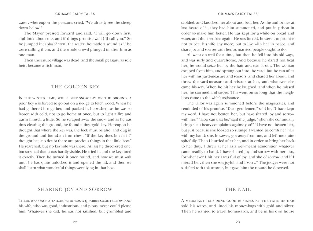 Discover the original stories of Grimm's Fairy Tales with this exquisite edition from Union Square & Co.'s Signature Gilded Editions series! The stunning Grimm's Fairy Tales special edition features sprayed edges, color end pages, a built-in ribbon bookmark, and embossed foil cover. The beautiful design and attention to detail set this special edition book apart, whether you're reading for the first time or building a library of your favorite classic literature books.