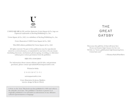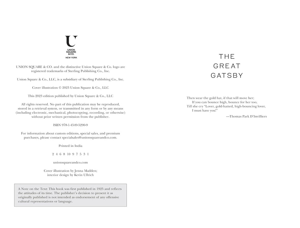 Discover the story of F. Scott Fitzgerald's Great Gatsby with this exquisite edition from Union Square & Co.'s Signature Gilded Editions series! The stunning Great Gatsby special edition features sprayed edges, color end pages, a built-in ribbon bookmark, and embossed foil cover. The beautiful design and attention to detail set this special edition book apart, whether you're reading for the first time or building a library of your favorite classic literature books .