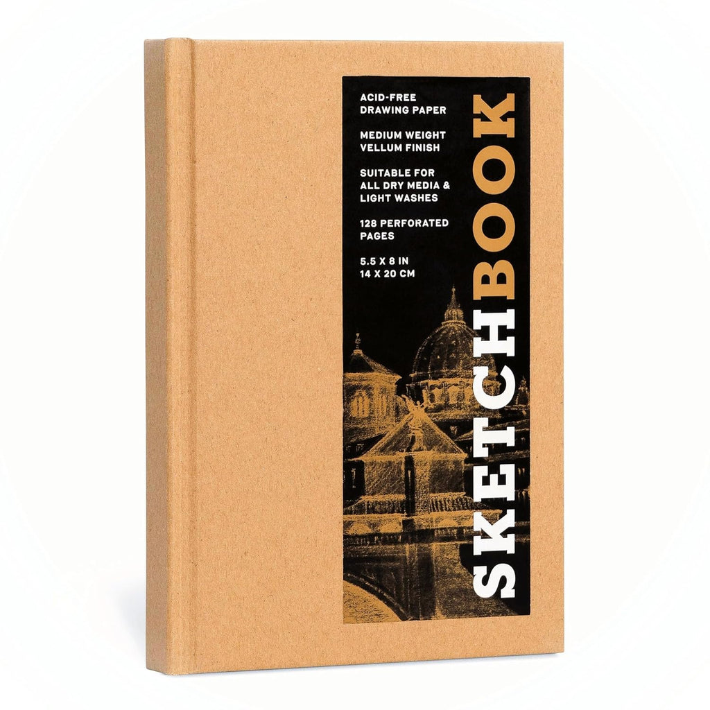This beautiful small 5.5x8 sketchbook, with a ribbon marker, has a classic binding and Kraft hardcover with removable sticker. Perforated pages make it easy to tear out any masterpieces you want to frame or give as a gift! Features include: