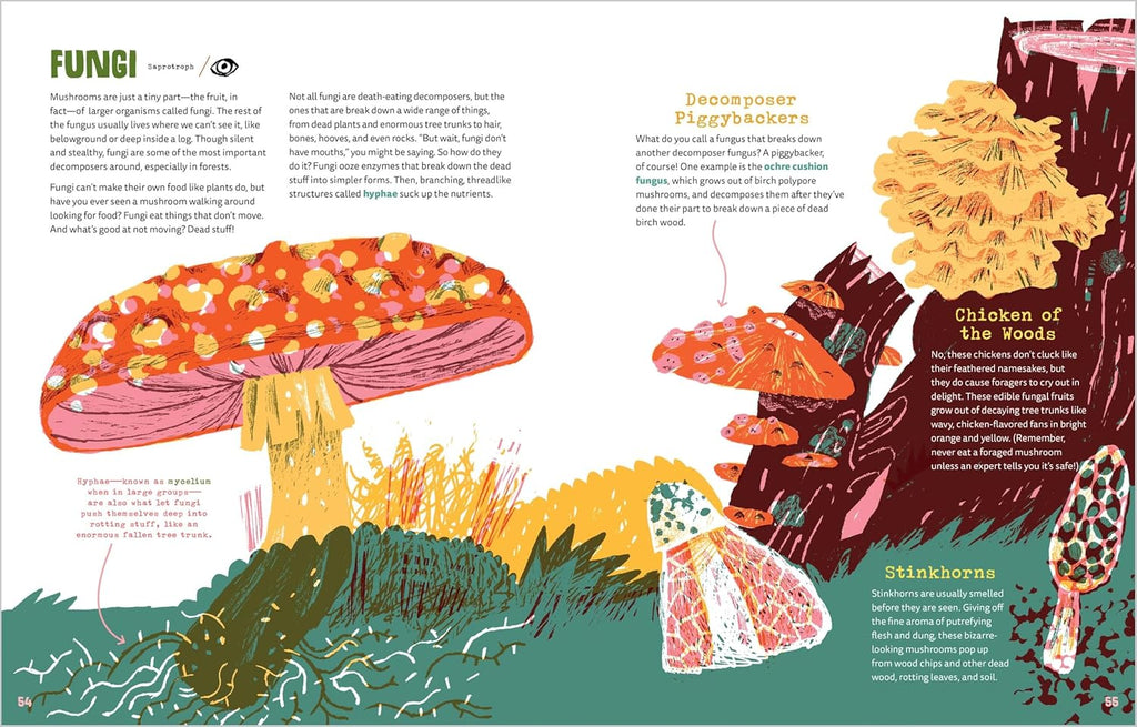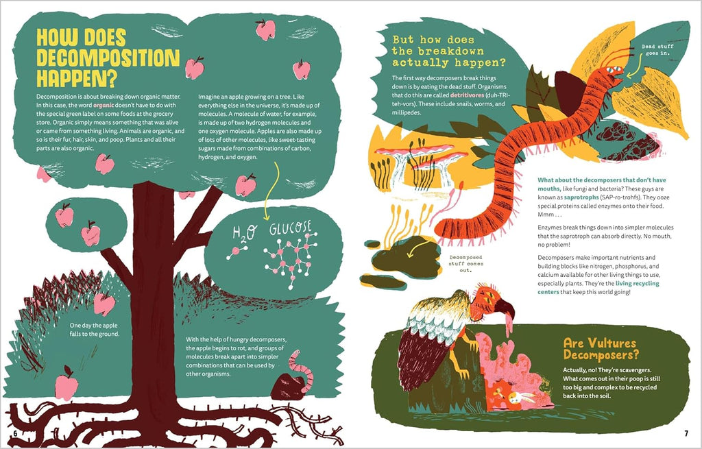 With a touch of humor and quirky full-color illustrations, kids will learn about the life-recycling system happening all around us--in the sea, in the soil, and even inside our own bodies. Profiles of decomposers such as hungry fungi and familiar worms, poop-slurping butterflies, and slimy banana slugs offer something to pique the curiosity of every kid. Readers will also learn the heroic role decomposers might play in fighting climate change and eating plastic.