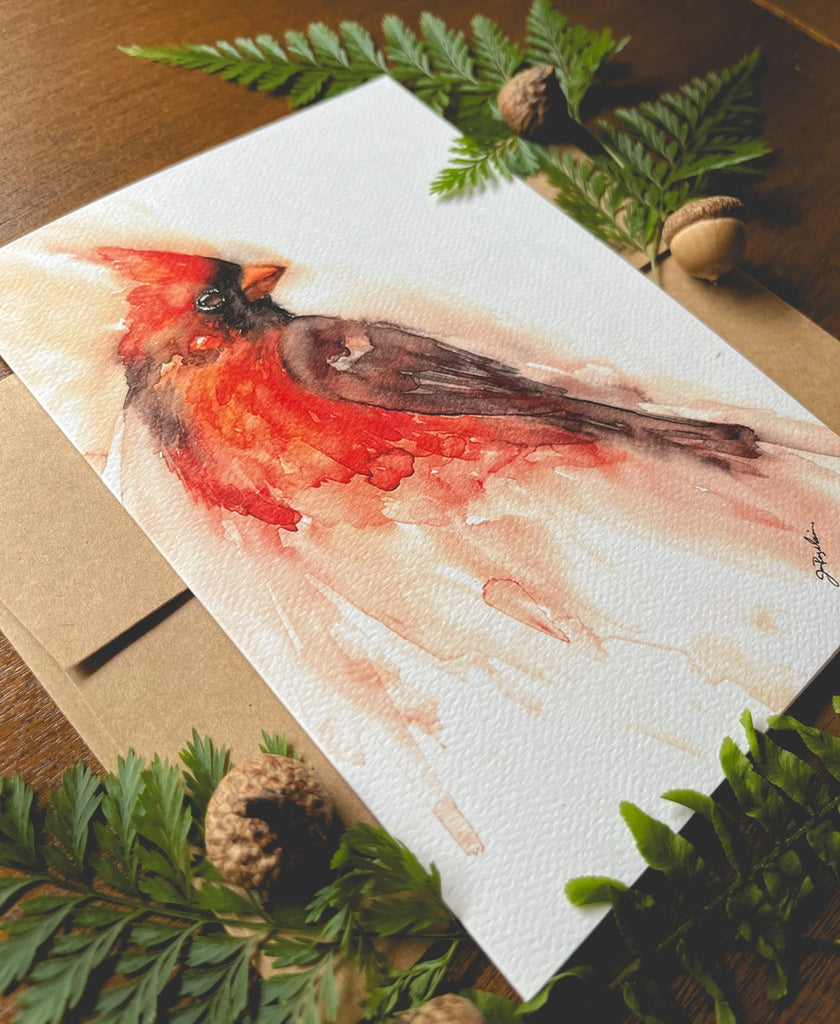Northern Cardinal Watercolor printed locally on 90# textured paper to mimic watercolor paper