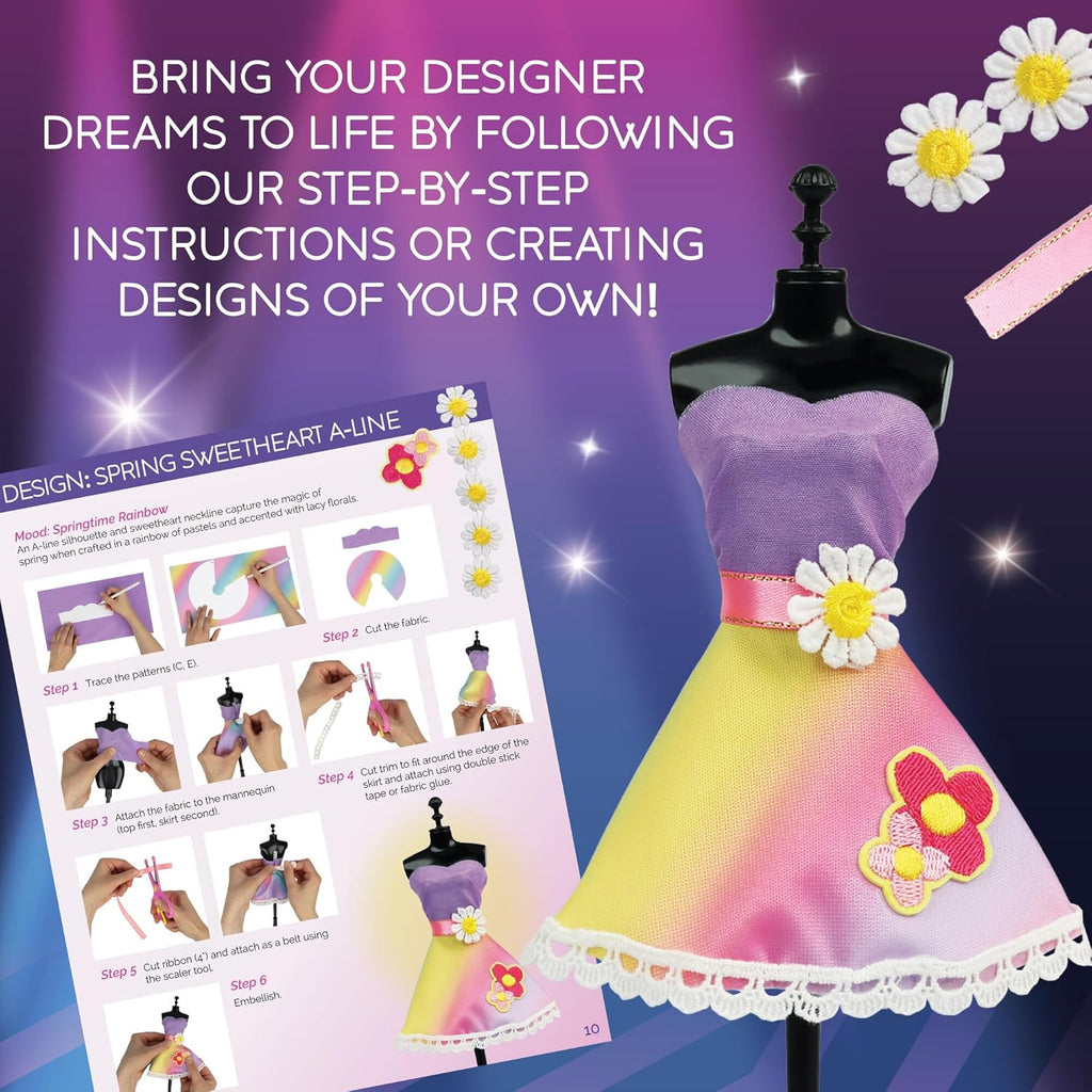 Step into the world of high fashion, where style dreams become reality! This all encompassing kit empowers aspiring designers to craft their own fashion lines, with no sewing necessary thanks to the provided easy to use tool and custom mannequins. Stocked with over 450 fabric pieces and all the tools needed to bring runway ready looks to life, designers can sketch concepts, mold fabrics into garments and showcase their collections. It's an unparalleled adventure into the fashion industry, offering an unbeatable mix of fun and education!