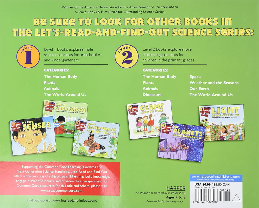 Books in this series support the Common Core Learning Standards, Next Generation Science Standards, and the Science, Technology, Engineering, and Math (STEM) standards. Let's-Read-and-Find-Out is the winner of the American Association for the Advancement of Science/Subaru Science Books & Films Prize for Outstanding Science Series.