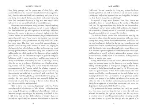 Sent to live with her rich cousins, the Bertrams, at the age of ten, Fanny Price is acutely aware of her humble rank. As she grows up, she falls in love with her cousin Edmund Bertram, her only ally and friend. But when the Crawfords move into the neighborhood, bringing the glamour of London and a reckless taste for flirtation, the Bertram family is thrown into scandal. Together, Fanny and Edmund must overcome the chaos around them to come to terms with the love they have for each other.