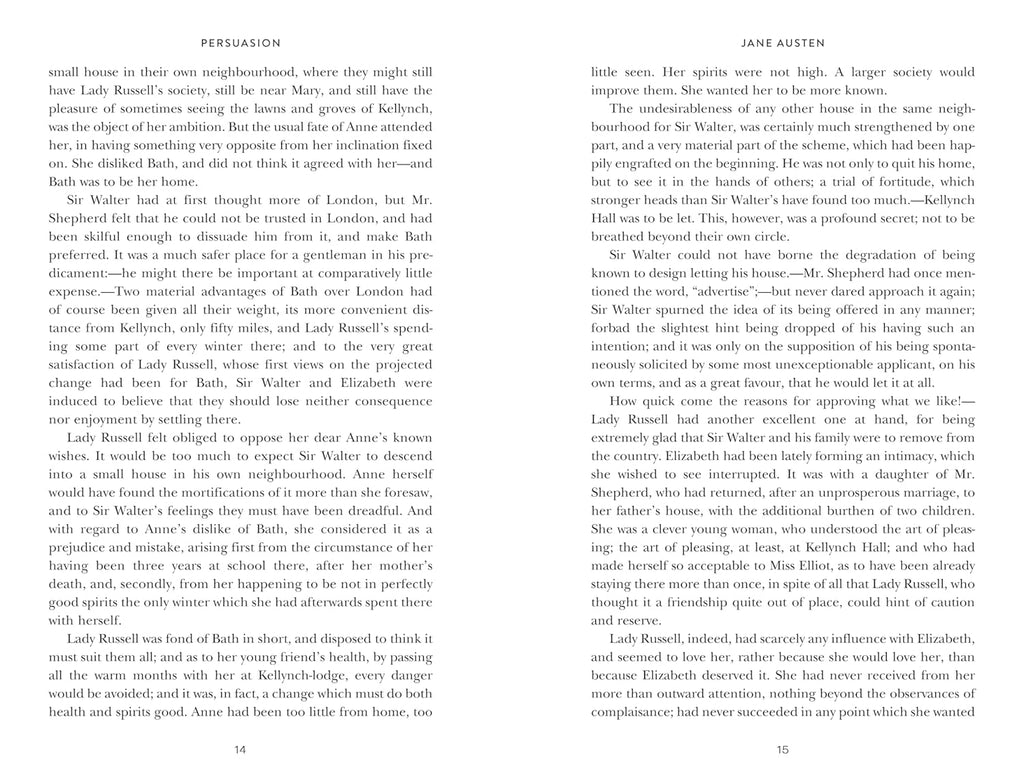 Eight years ago, Anne Elliot followed the advice of Lady Russell, her only true friend, and broke off her engagement to the dashing young naval officer Frederick Wentworth. When Anne and the now wealthy Captain Wentworth cross paths years later, it is clear that he has neither forgotten--nor forgiven--their past. Can true love survive heartbreak? Who should we listen to in matters of the heart? Filled with Jane Austen's trademark wit, Persuasion is both a delightful romantic comedy and a surprisingly subversive exploration of our need to persuade, and be persuaded by, others.