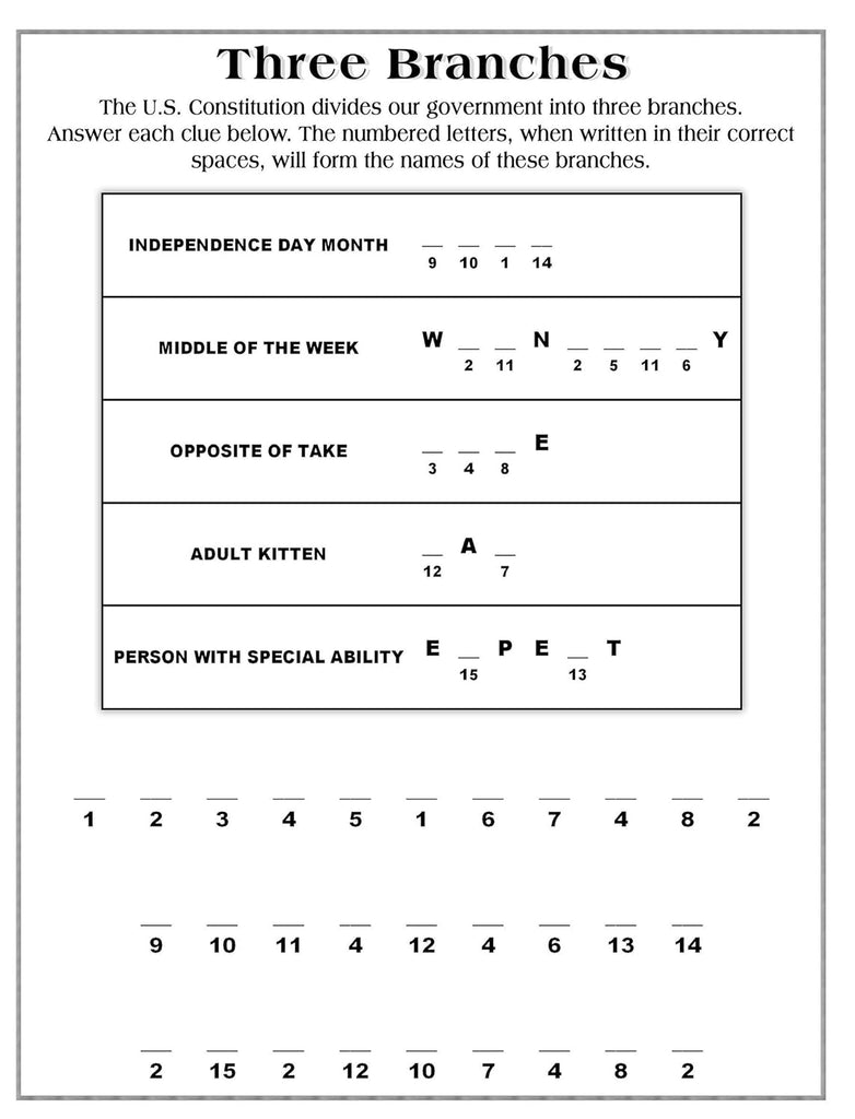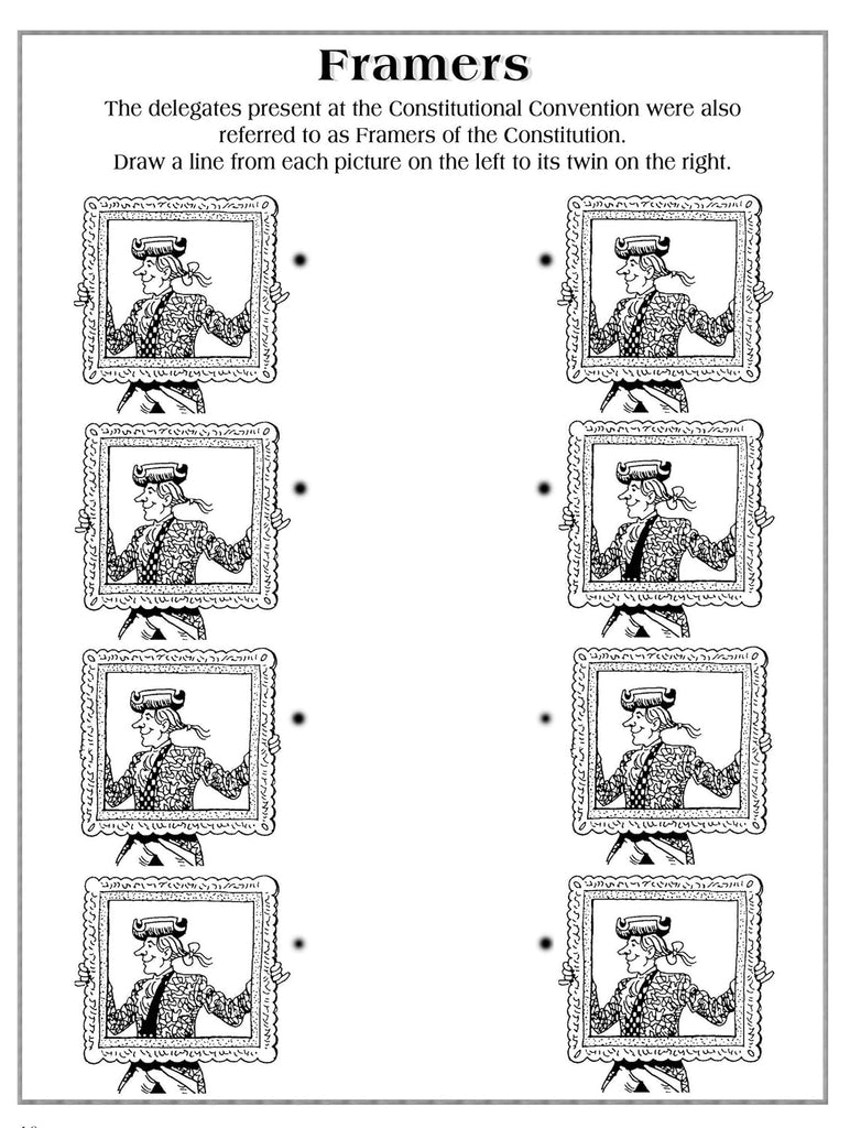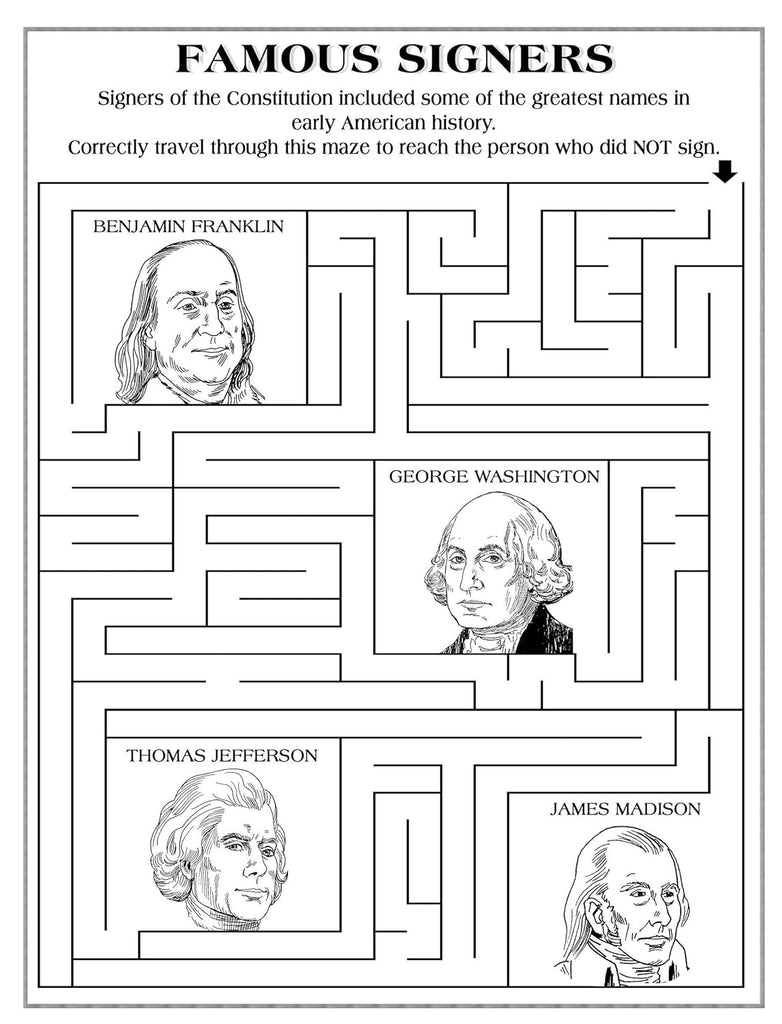 Solve the puzzles to discover fun facts about the U. S. Constitution! These mazes, secret codes, crosswords, and other puzzles offer an entertaining way to learn about the Constitution, the foundation of the supreme law of the United States. Thirty-four challenges reveal significant facts, such as who signed the Constitution, where and when the delegates gathered, how the document made the United States into a nation, and other fascinating historical details. Includes solutions.