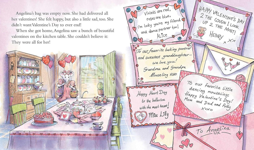 It's Valentine's Day in Chipping Cheddar. Angelina Ballerina sends Valentine's Day cards to all of her friends and family. Readers can pull the tabs to read the valentines. At the end, Angelina has a Valentine's Day card for readers, too, and gets a sweet surprise of her own!