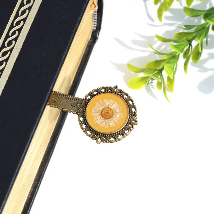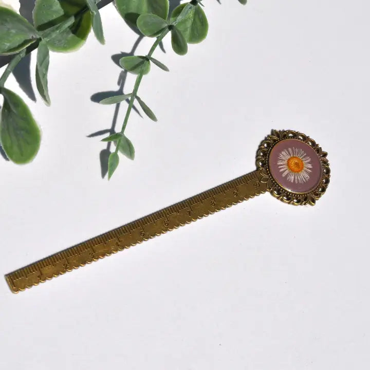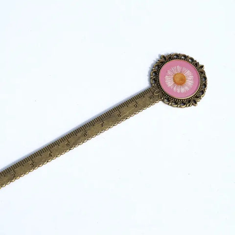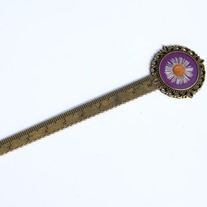 This unique bookmark holds a pressed fleabane flower. It is a perfect gift for those who love nature and flowers!