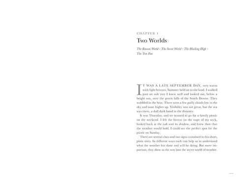 In The Secret World of Weather, bestselling author Tristan Gooley turns his gaze up to the sky, bringing his signature brand of close observation and eye-opening deduction to the fascinating world of weather. Every cloud, every change in temperature, every raindrop, every sunbeam, every breeze reveals something about our weather--if you know what to look for. Before you know it, you'll be able to forecast impending storms, sunny days, and everything in between, all without needing to consult your smartphone.